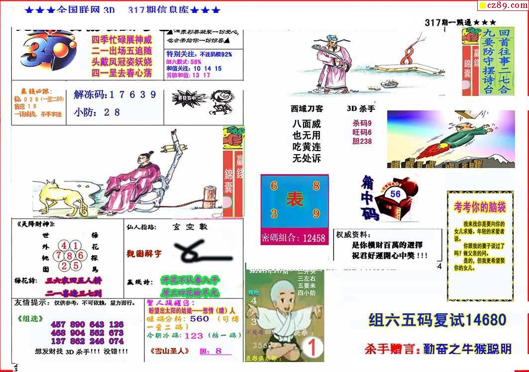 杀手+鑫马快报+字迷汇总25年317期3d图谜